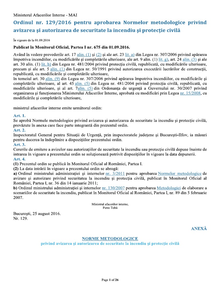Ordin M A I 129 Din 2016 Avizare Si Autorizare