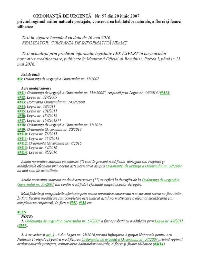 O U G Nr 57 2007 Privind Regimul Ariilor Naturale Protejate Conservarea Habitatelor Naturale A Florei Si Faunei Sălbatice Modificări O U G Nr 75 2018 Universul Juridic