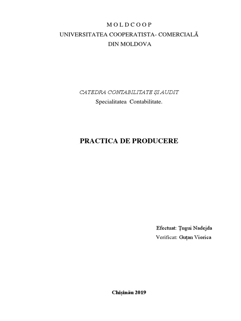 Practica De Producere Moldcoop Universitatea Cooperatista Comercială Din Moldova