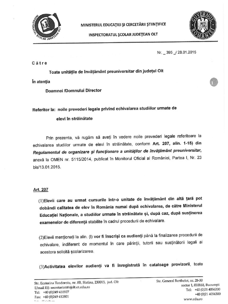 Art 207 R O F U I P Echivalarea Studiilor Elevilor
