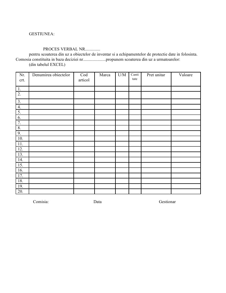 Proces Verbal De Casare Obiecte De Inventar Model Word