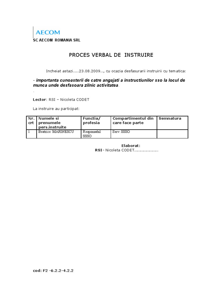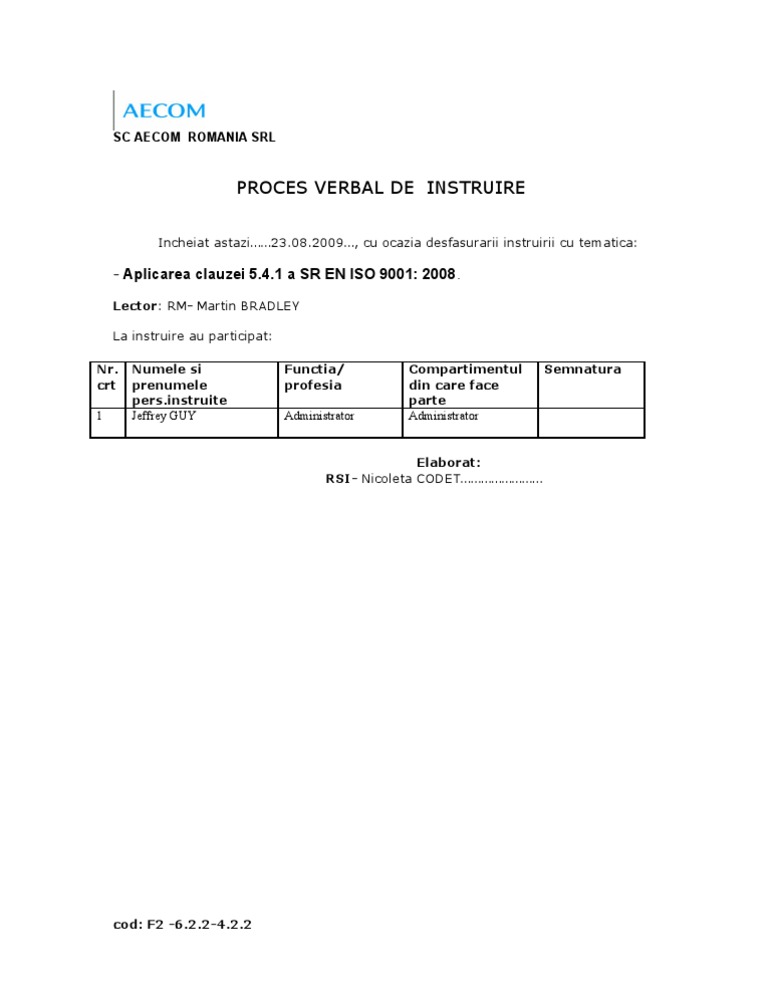 Proces Verbal De Instruire Pt Actiune Corectiva Nc 4