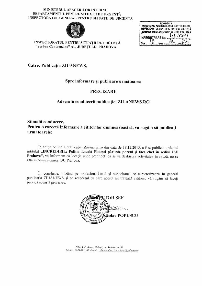 Suntem Romania Revista Magazin Independenta 930 Precizare Adresata Conducerii Publicatiei Ziuanews Ro I S U Prahova