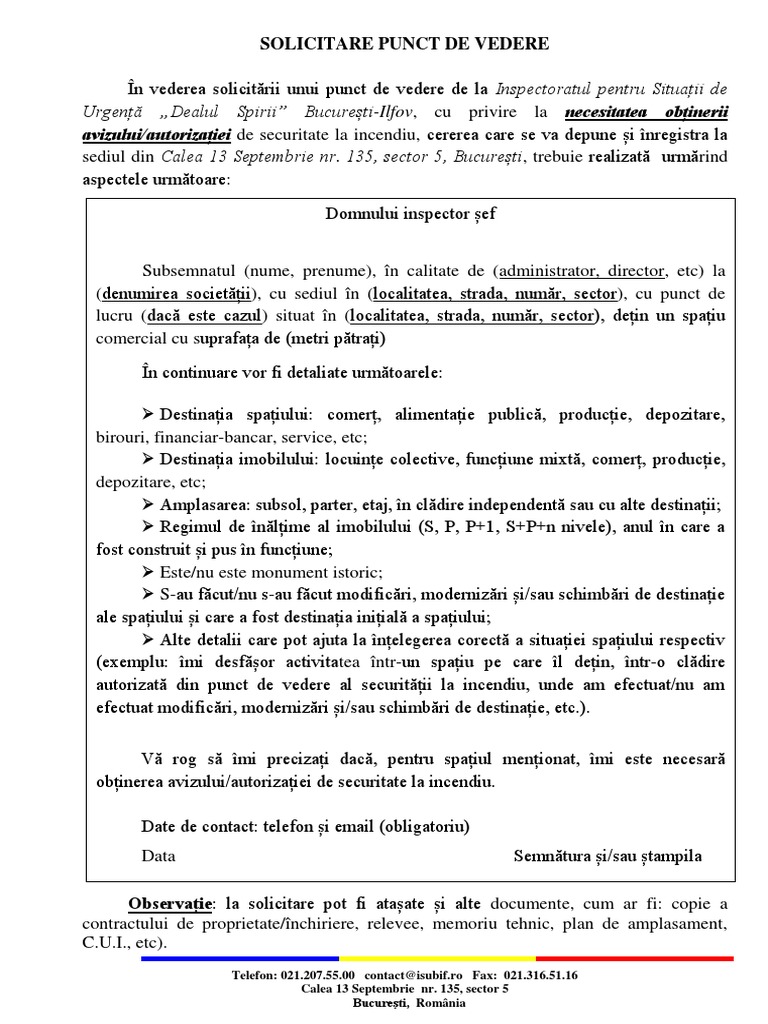 Model Solicitare Punct De Vedere Aviz Autorizatie Isu