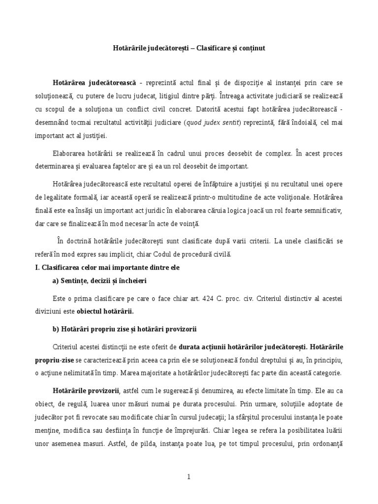 Referat Hotararile Judecatoresti