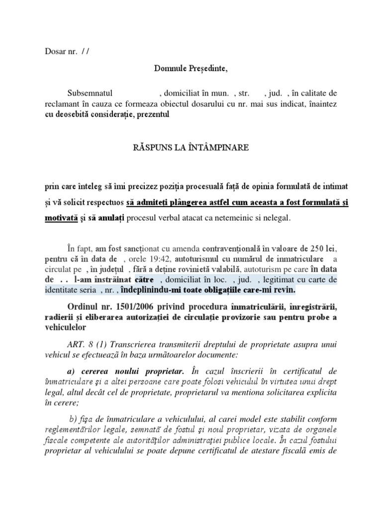 Model Cerere Contestatie Proces Verbal Suspendare Permis