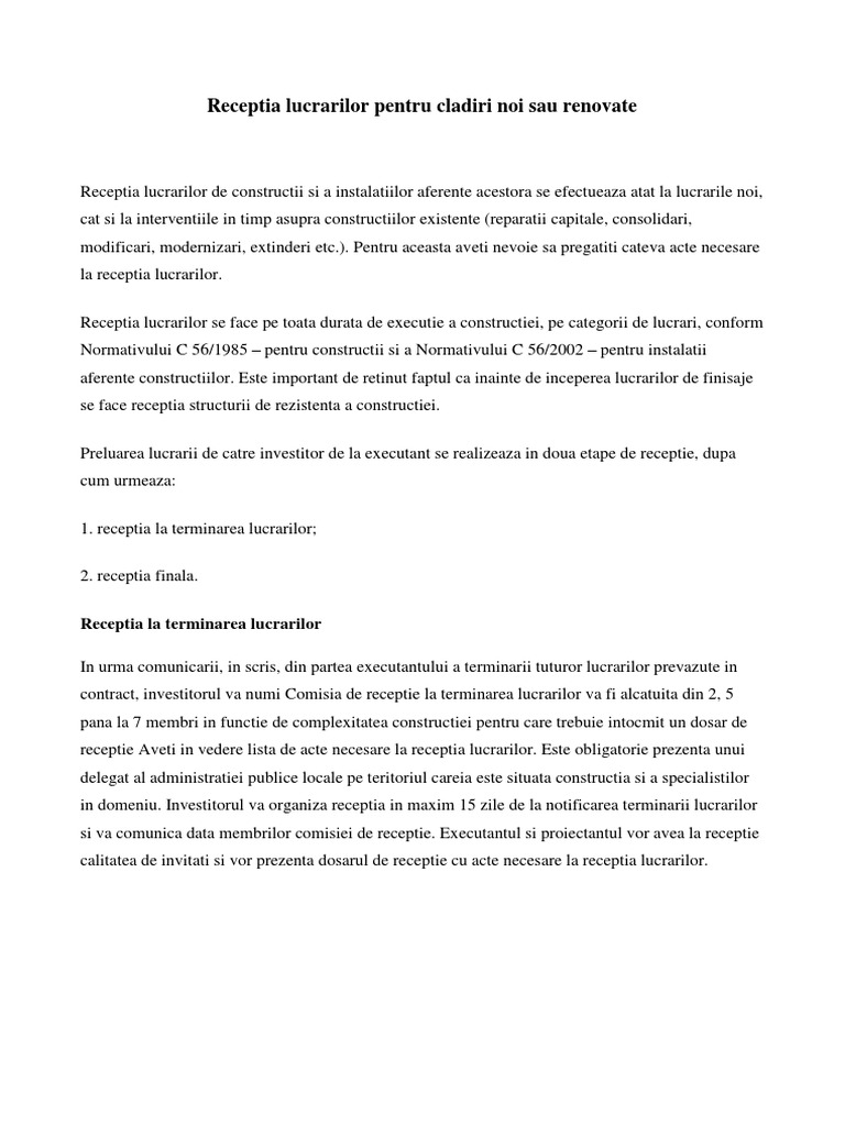 Receptia Lucrarilor Pentru Cladiri Noi Sau Renovate