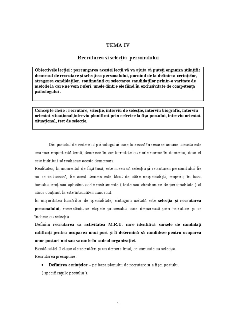 Recrutarea Si Selectia Resurselor Umane Cu Studiu De Caz Tocilar Ro