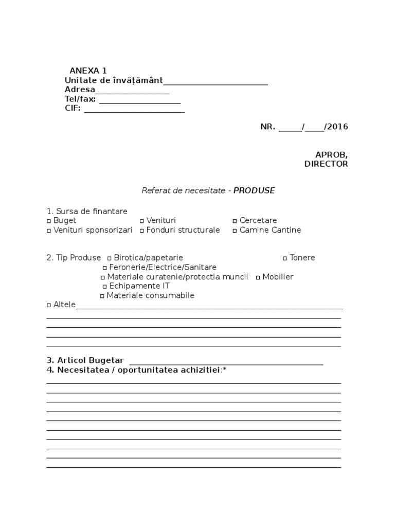 Model Referat De Necesitate Scoala