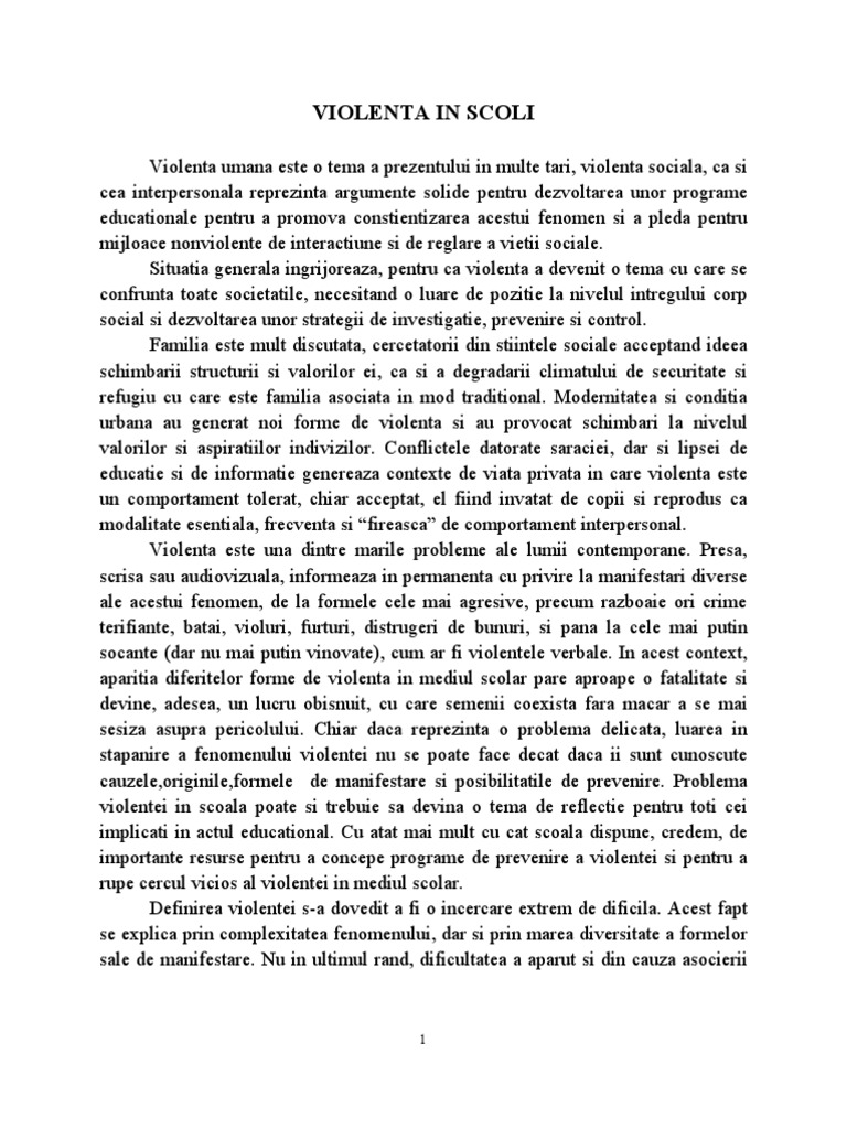 Referat Violenta Scolara Cauze Si Modalitati De Prevenire Psihologie 110783