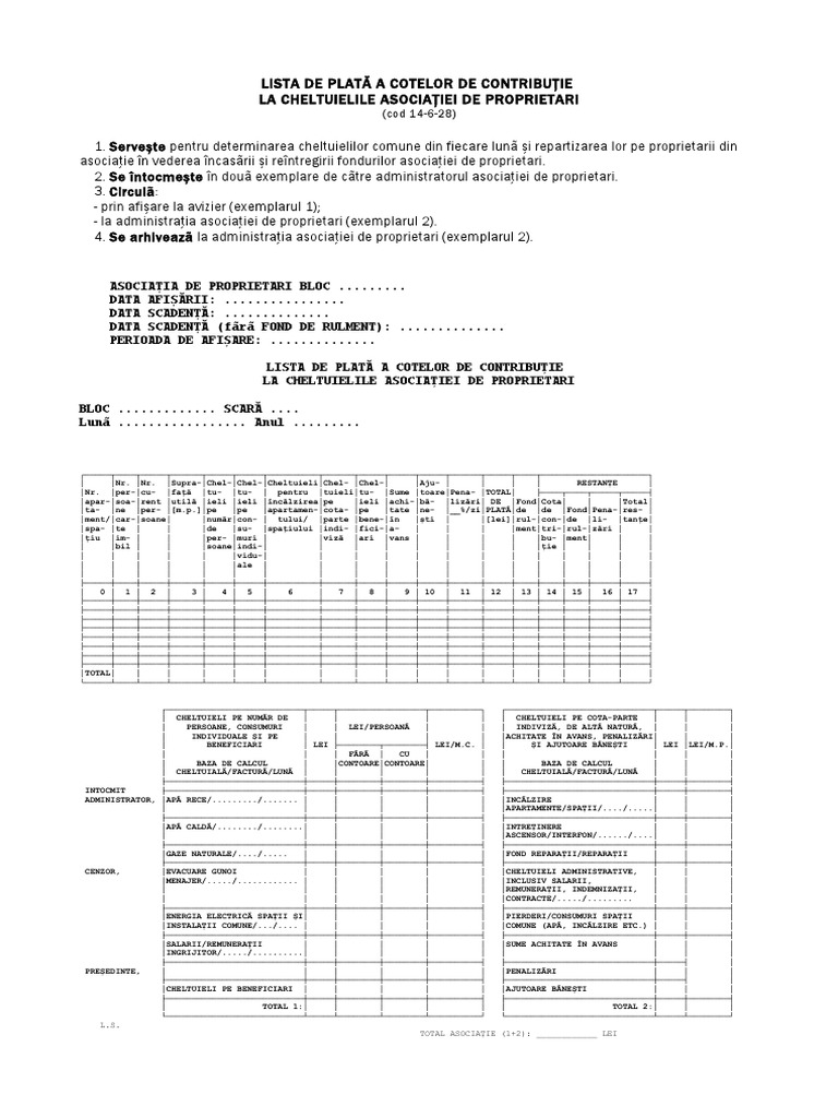 Cheltuielile Asociatiei De Proprietari Repartizare