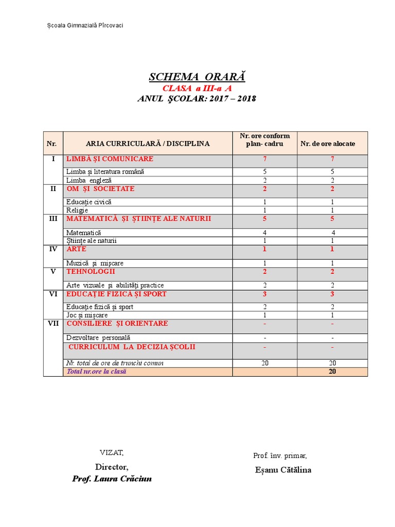 Schema Orara Clasa A Iia