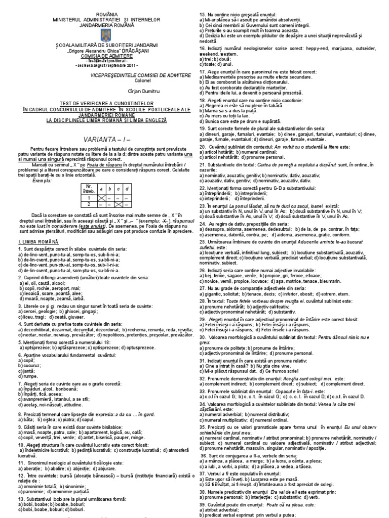 Subiecte Admitere Academia De Poliție 2017 Răspunsuri Grilă Dcnews