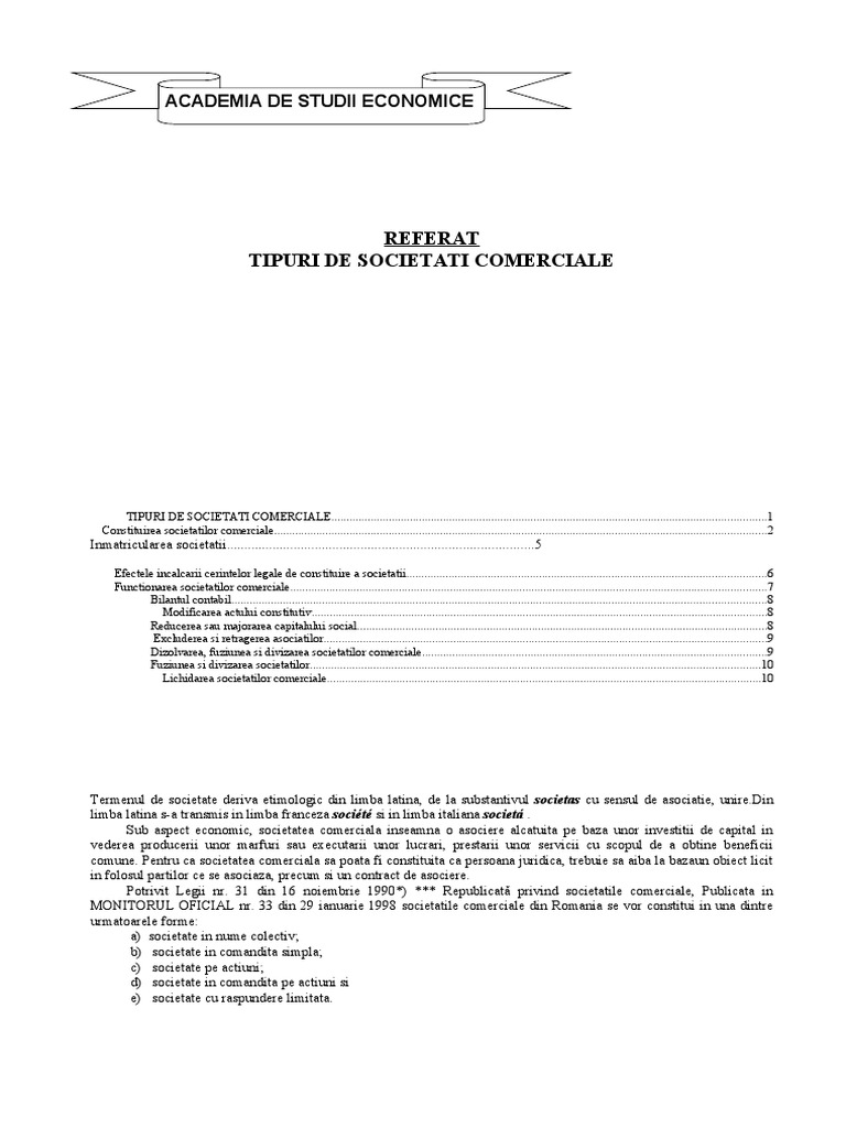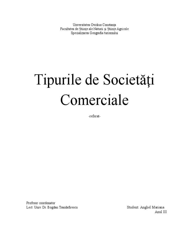 Referat Tipuri De Societati Comerciale Drept Comercial 7810