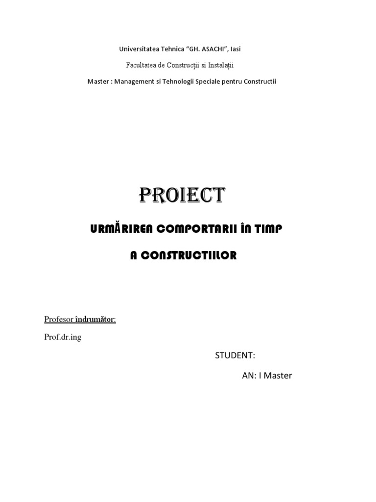 Proiect Urmarirea Comportarii In Timp A Constr