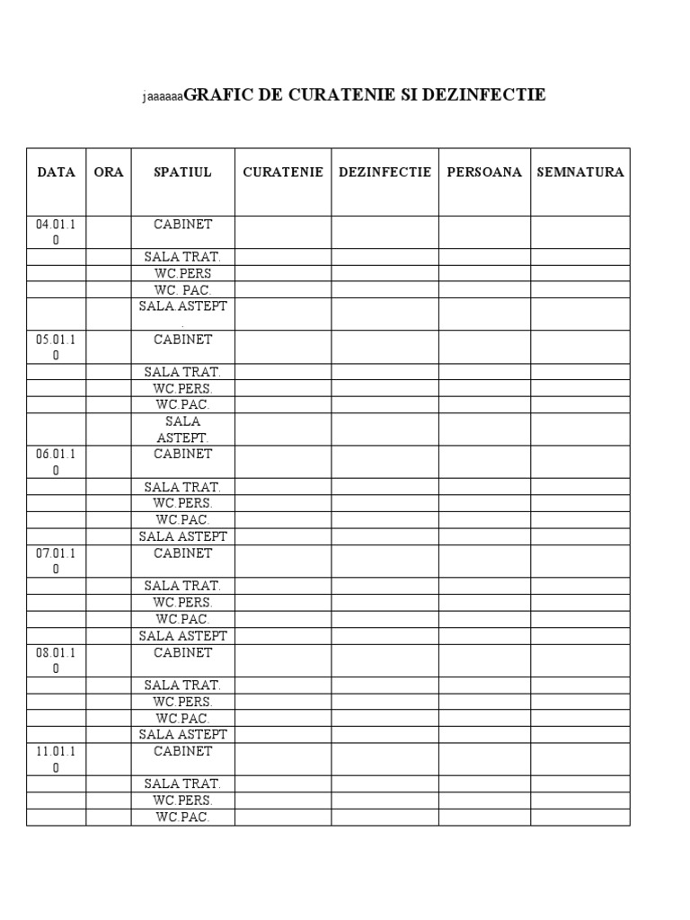 Word Doc Grafic De Curatenie Si Dezinfectie Model